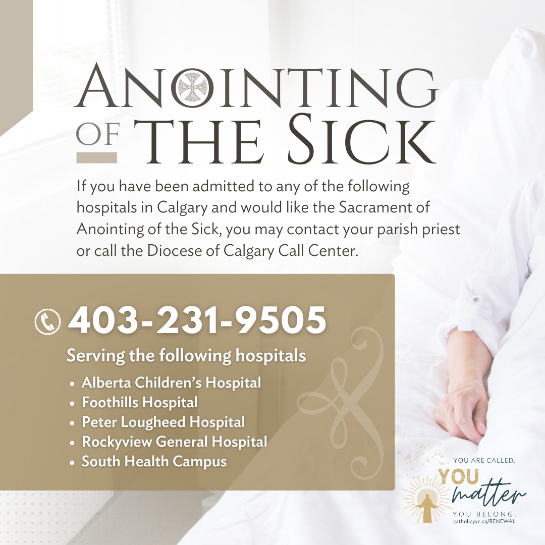 If you or a loved one are in need of the Anointing of the Sick, please contact the parish office at 403-327-8931 / allsaintslethbridge@shaw.ca. In cases of emergency, a priest can be reached at any time.