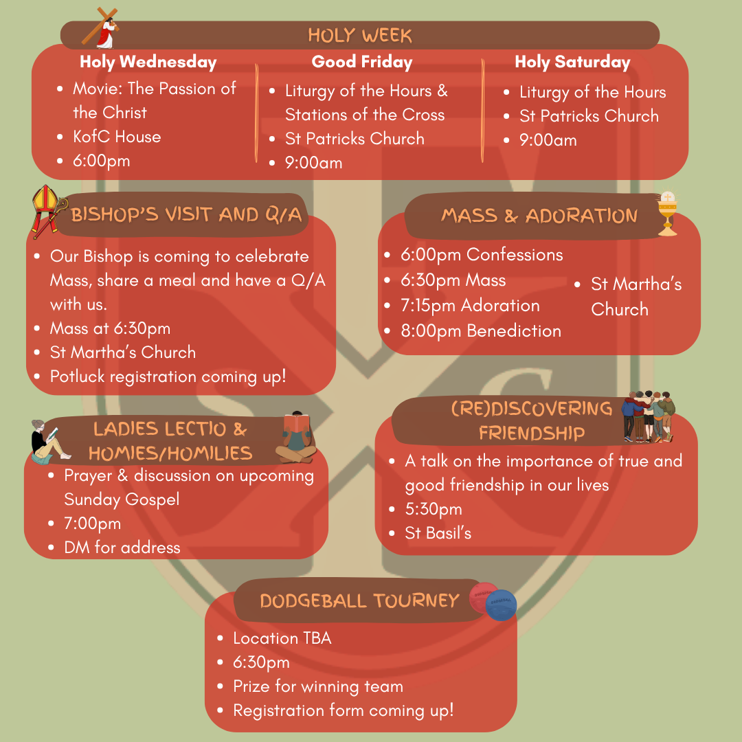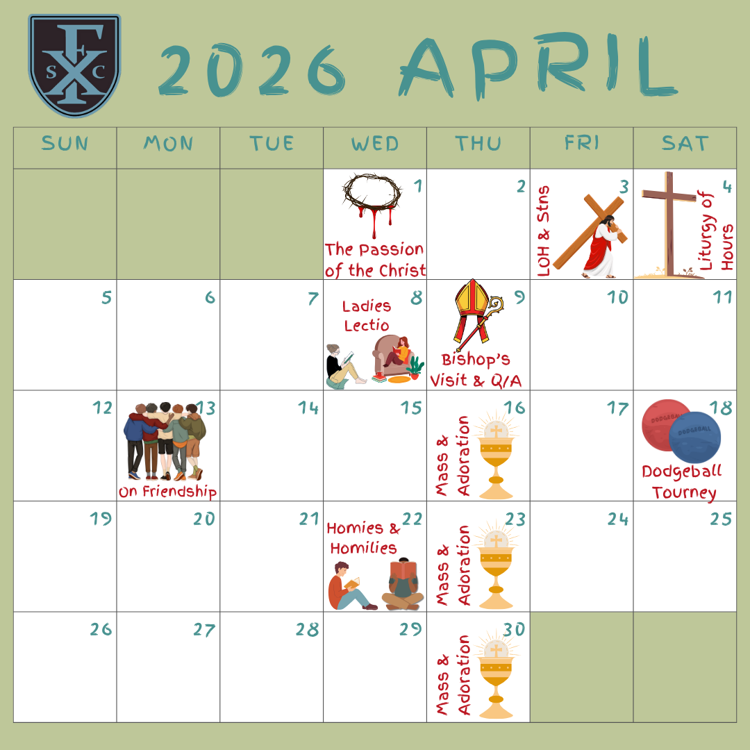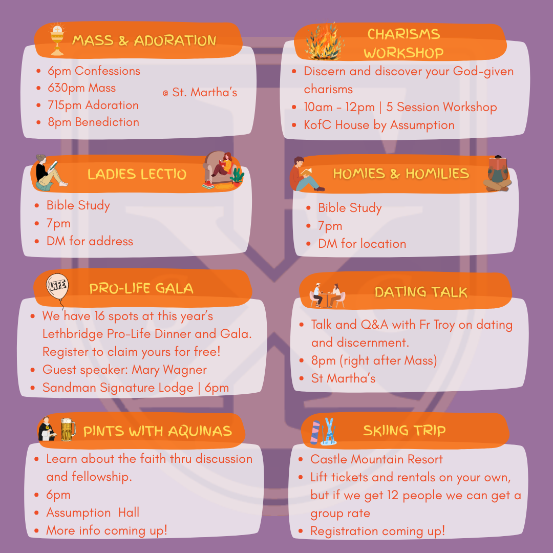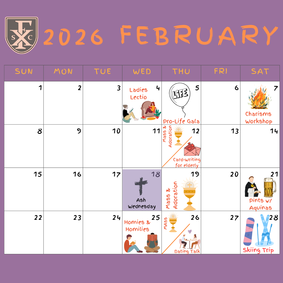 For more information on any events stay tuned on our IG (@sfxc_leth) or email santiago.torres@calgarydiocese.ca